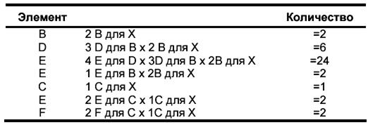 а)Элемент Е встречается в трех различных местах. Общие требования по данному элементу можно определить путем суммирования всех величин для элемента Е, что даст 28.