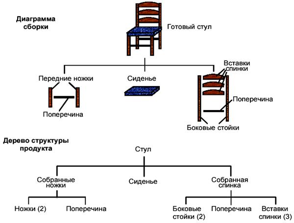 Рис. 6.13. Диаграмма сборки и дерево структуры продукта для стула
