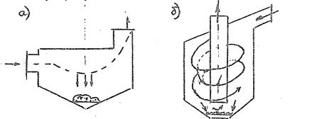 В пылеосадочной камере отделение шли происходит в результате ее осаждения под действием собственного веса. В циклоне под действием центробежной силы частицы пыли отбрасываются к стенкам корпуса, опускаются вниз и собираются в нижней части аппарата.