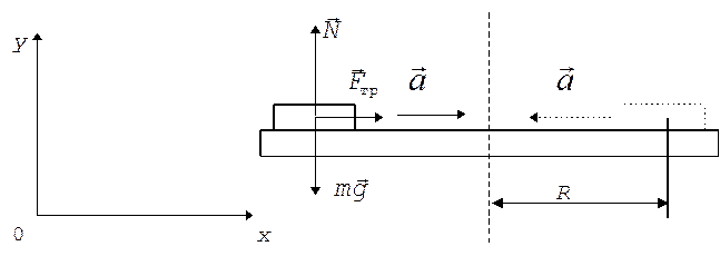 Оставаясь неподвижной относительно платформы, шайба вместе с тем движется с ускорением, которое является центростремительным и определяется по формуле