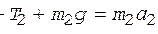 Направим ось y вертикально вверх и напишем для каждого груза уравнение движения (второй закон Ньютона) в проекциях на эту ось.