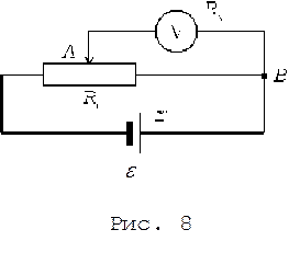 Решение. Показание вольтметра, подключенного к точкам А и В (рис. 8), или разность потенциалов U1 между точками А и В, определяем по формуле