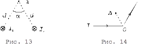 302. По двум бесконечно длинным прямым проводникам текут, как показано на рис. 13, одинаковые токи силой I1 = I2 = 60 А. Определить магнитную индукцию (В) в точке А, равноудаленной от проводников на расстояние d = 10 см. Угол a = 60°.