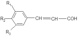 1) конифериловый альдегид (R1=H, R2=OH, R3=OCH3)
