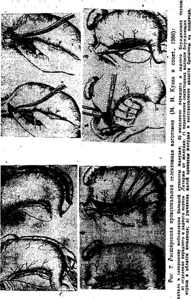 г. Если позволяют условия, лучше сделать проксимальную селективную ваготомию, не сопровождающуюся денервацией внутренних органов, кроме желудка, и вызывающую наименьшее нарушение его моторной деятельности.