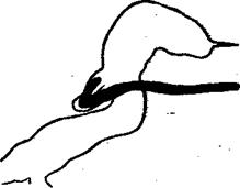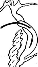 По нашим наблюдениям, в длинном и низко впадающем пузырном протоке могут фиксироваться камни, которые извне сдавливают холедох и приводят к развитию нетолько холецистита, но и желтухи (рис. 19). Случаи дуктулярного литиаза нередки и требуют точной дифференцировки, поскольку такие камни невозможно удалить прихоледотомии и очень трудно при папиллосфинктеротомии.