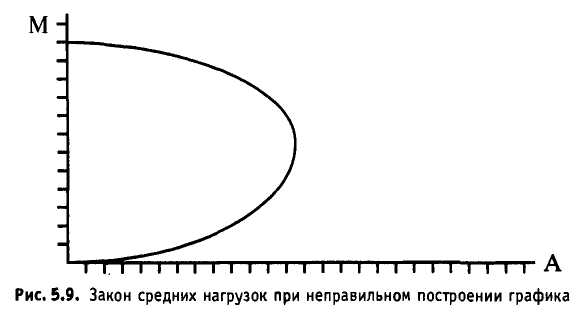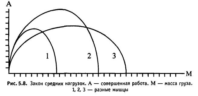 Результаты опыта всегда приводят к одному и тому же принципиально важному выводу: наибольшую работу мышца совершает при средних нагрузках. Это видно из графика, который строится по результатам опыта (рис. 5.8) Из него также следует, что для разных мышц величина оптимальной нагрузки оказывается неодинаковой, но всегда находится в области средних (для данной мышцы) нагрузок. Обнаруженная важная закономерность справедлива не только для скелетных мышц. Если же мы стали строить график чисто механически, не задумываясь, и на оси абсцисс отложили бы не массу груза, а произведенную работу, то получили бы такую нелепую кривую (рис. 5.9).