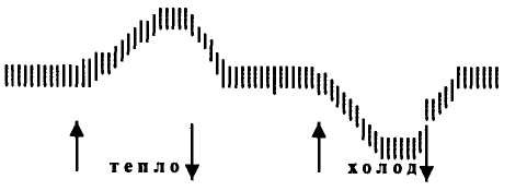 695. Расширение или сужение сосудов руки при действии тепла или холода вызывает соответственно подъем или опускание кривой, на которой продолжают регистрироваться пульсовые колебания объема.