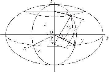 Ці формули показують, що площина z=const (рис 2.2) паралельна площині ху і перетинає поверхню еліпсоїда по колу радіуса r.