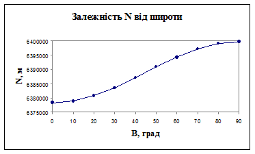 Величини М та N характеризують форму поверхні еліпсоїда в околицях даної точки і в подальшому постійно будуть нами використовуватися. Графічно, залежність радіусів кривини