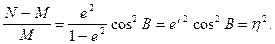 Радіуси кривини M та N , як функції широти В даної точки, застосовуються в багатьох теоретичних і практичних розрахунках. У функції широти радіус кривини меридіана М може бути виражений через формули (1.2) або через коефіцієнти першої та другої квадратичних форм поверхні (1.7).