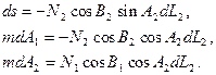 Ці рівняння показують, як змінюється довжина геодезичної лінії та її азимути у випадку, якщо кінці цієї лінії отримують деякі малі зміщення, котрі виражені диференціалами координат. Рівняння (3.37) приймаються за вихідні співвідношення, з яких потім знаходять інші залежності між цими диференціалами.