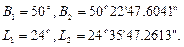 | Bmo Amo b1 a1 l1 Bm1 Am1 b2 a2 l2 Bm2 Am2 b3 a3 l3 Bm3 Am3 b4 a4 l4 Bm4 Am4 B2 L2 A2 | 50o 45o 6.657144 10-3 7.911677 10-3 1.032793 10-2 50o11’26.56” 45o13’35.95” 6.6306144 10-3 7.9967807 10-3 1.0409943 10-2 50o11’23.831” 45o13’44.727” 6.63033218 10-3 7.99690367 10-3 1.04102177 10-2 50o11’23.8021” 45o13’44.740” 6.63033178 10-3 7.99690187 10-3 1.04102165 10-2 50o11’23.8020” 45o13’44.740” 50o22’47.6041” 24o35’47.2613” 225o27’29.479” |