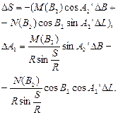 · за величинами B1,L1, S’, A1’ розв’язують пряму геодезичну задачу на поверхні еліпсоїда (див. її алгоритм) і знаходять B2’,L2’,A2’;