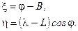 вимірює кут між нормаллю до еліпсоїда і напрямом на точку