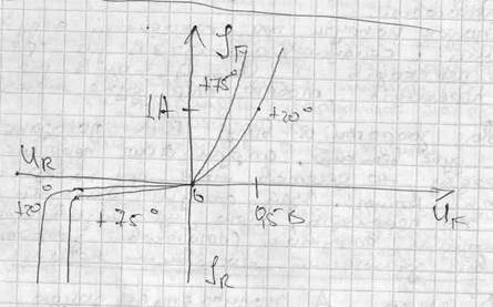 При збільшені температури зменшується спадок напруги на прямій вітці ВАХ p-n переходу. Ця зміна незначна і несуттєво впливає нахарактеристики p-n переходів. При збільшені температури різко зростає зворотній струм. Приблизно в 2 рази на кожні 10 °С. Це наближене явище. Для Ge p-n переходів зміна ще більша. Перевищення температури і збільшення зворотного струму найчастіше є причиною виходу з ладу НП приладу, тому вони мають певні температурні межі роботи. Для кремнієвих [-100°C ÷ +150°C - +180°C], для германію [-40°C ÷ +60,+70°C]