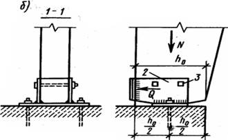 Рис. 7.4. Опорні вузли клеєдерев’яних рам: а — зі стійкою постійного перерізу; б — зі стійкою перемінного перерізу;