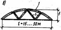 Рис. 8.1. Клеєдерев’яні ферми: а - трикутна зі спадними розкосами; в - сегментна; г – п’ятикутна;