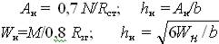 Переріз верхніх поясів клеєдерев’яних ферм підбирають з врахуванням того, що в них діють згинаючі моменти М і подовжні сили N. Висота перерізу верхнього пояса може визначатися попередньо, приблизно з врахуванням тільки поздовжніх сил або тільки згинального моменту з таких виразів: