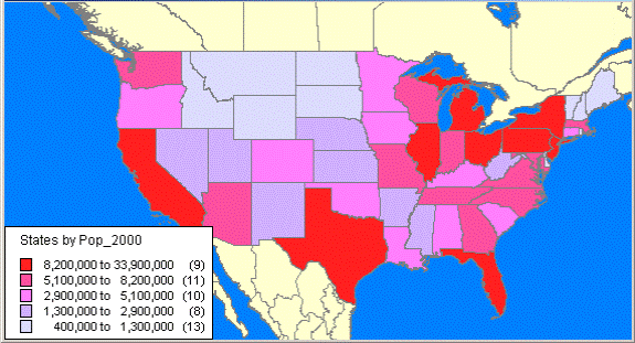 Рисунок 2. Політико-адміністративна карта США (метод послідовної зміни кольорів).