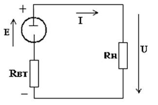 Источник питания обладает внутренним сопротивлением Rвт, а нагрузочное сопротивление на схеме имеет обозначение Rн.