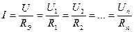где эквивалентное сопротивление Rэ равно арифметической сумме сопротивлений на участках цепи: