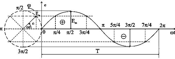 Мгновенные величины i, u, e изменяются в любой момент времени по синусоидальному закону