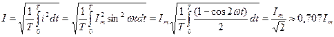 откуда действующее значение тока равно среднеквадратичному значению переменного тока за период T: