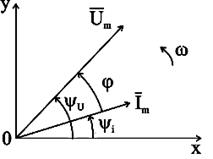 Рис.2.8. Векторное изображение синусоидальных значений напряжения и тока, имеющих угол сдвига фаз