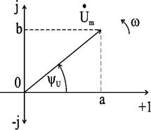 Рис.2.11. Изображение вектора напряжения синусоидальной величины на комплексной плоскости
