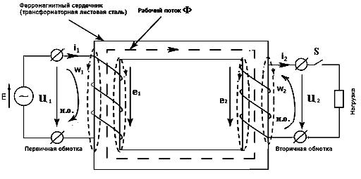 Рис.4.1. Схема, поясняющая устройство и работу однофазного трансформатора