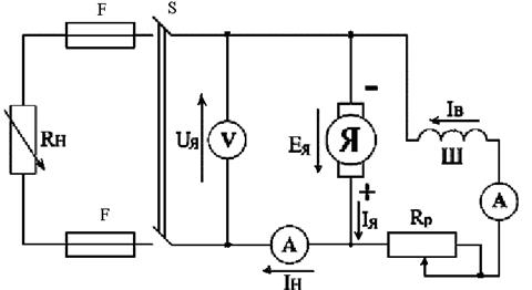 Рис.5.7. Электрическая схема генератора постоянного тока параллельного возбуждения