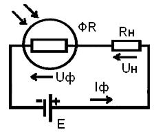 На рис.7.32 изображена схема подключения фоторезистора ФR к источнику питания E через нагрузочное сопротивление Rн.