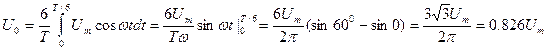положительный потенциал относительно нулевой точки. За период каждая фаза вторичной обмотки трансформатора создаёт один импульс тока через нагрузку. График напряжения на нагрузке представлен на рис.8.7. Аналогичный вид имеет и график тока через нагрузку.