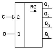 Регистр имеет два входа: на вход С поступают динамические импульсы сдвига, являющимися положительными импульсами, изменяющимися во времени; вход D является информационным входом.