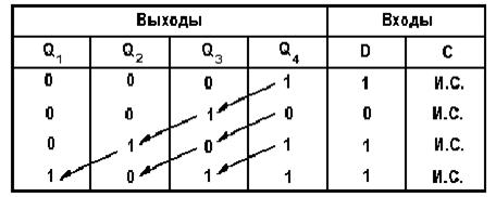 B исходное нулевое состояние логических сигналов на всех выходах Q1 ÷ Q4 ,
