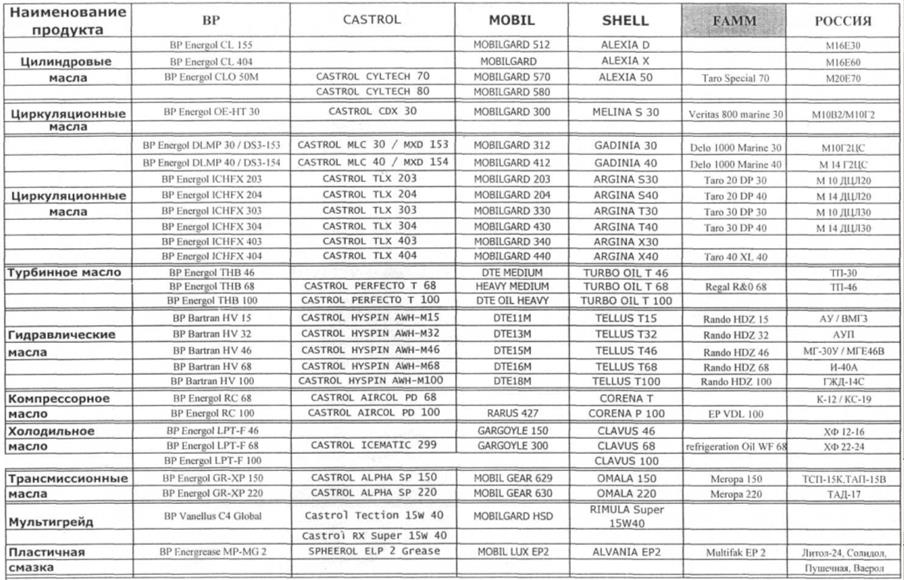 | 1. | Главные дизели 6ЧН30/38 и ДГ | Подшипники, цилиндры | SAE-30 | СС | Г2 | Не менее 9 | М10Г2ЦС | Mobilgard 330 | Energol DL-MP 30 | |