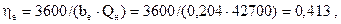 где Qт – теплота, затрачиваемая на технологические нужды, которые определяются условиями транспортировки груза, для пассажирского судна проекта 302Мк принимаем с учетом того, что во вспомогательном котле рабочее давление 0,6 МПа [6] (следовательно теплота парообразования r = 2086 кДж/кг [2, стр. 15]), а в утилизационных рабочее давление 0,5 МПа [6] (следовательно теплота парообразования r = 2108 кДж/кг [2, стр. 15]), тогда, принимая, что на ходовом режиме работают утилизационные котлы, а вспомогательный – только на стоянке, Qт = 2×500× 2108 = 2108000 кДж/ч (по производительности утилизационных котлов); Qн – низшая теплота сгорания топлива, принимаем для дизельного топлива среднего состава Qн = 42500 кДж/кг; Ву – общий расход топлива на СЭУ судна проекта 302М (см. табл. 2), кг/ч, Ву =