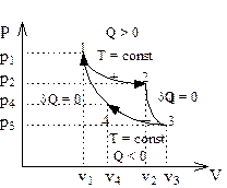 Проведение прямого цикла Карно представим следующим образом (рис. 3 - 2).
