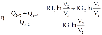 Окончательно имеем для КПД цикла Карно с идеальным газом