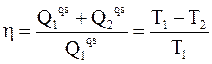 в котором Q1qs - теплота, получаемая системой от теплового источника с температурой Т1, а Q2qs - теплота, поступающая к тепловому стоку с температурой Т2.