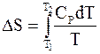 Конечное приращение энтропии при нагревании системы от температуры Т1 до температуры Т2 рассчитывается по формуле