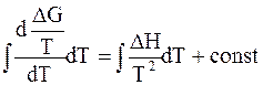 Подстановка правой части уравнения (5 - 76) в уравнение (5 - 75) приводит к полной интегральной форме уравнения Гиббса - Гельмгольца, из которой следует, что приращение энергии Гиббса, а также максимальную полезную работу и условие равновесия системы можно было бы определить только по термохимическим данным, т.е. по результатам калориметрических измерений изменения энтальпии и теплоемкости. Для этого достаточно было бы установить величину константы интегрирования I`.