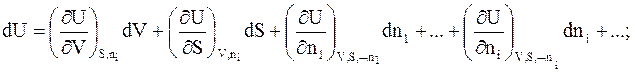 * внутренняя энергия становится функцией от объема, энтропии и чисел молей веществ