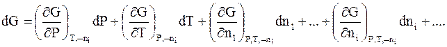 * энергия Гиббса - функцией давления, температуры и чисел молей