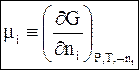 Химическим потенциаломmi называется парциальная молярная энергия Гиббса при постоянном давлении, постоянной температуре и постоянных числах молей остальных веществ