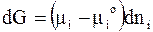 Если химический потенциал вещества i в стандартном состоянии равен mio, а химический потенциал в растворе равен mi, то изменение энергии Гиббса при переносе dni молей вещества из одной системы в другую можно представить следующим образом: