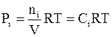 парциальное давление в случае постоянного объема газовой фазы можно выразить через молярную концентрацию Ci: