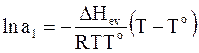 , где DHev - изменение энтальпии при испарении жидкости. Следовательно, производная логарифма летучести пара над чистым веществом также должна быть равна этой величине