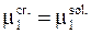 Если взять жидкий раствор такого типа, то при охлаждении его до определенной температуры начнут выделяться первые кристаллики твердого чистого вещества. Этим веществом является растворитель. Если между первым кристалликом твердого растворителя и раствором устанавливается равновесие, то для его описания используется равенство химических потенциалов